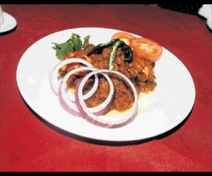 Over the table, Mrs B was prodding her vegetable samosa (£3.95) with a fork looking dismayed.